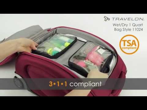 Travelon 3-1-1 Wet/Dry One Quart Clear Hanging Toiletry Bag with Bottles and Jars